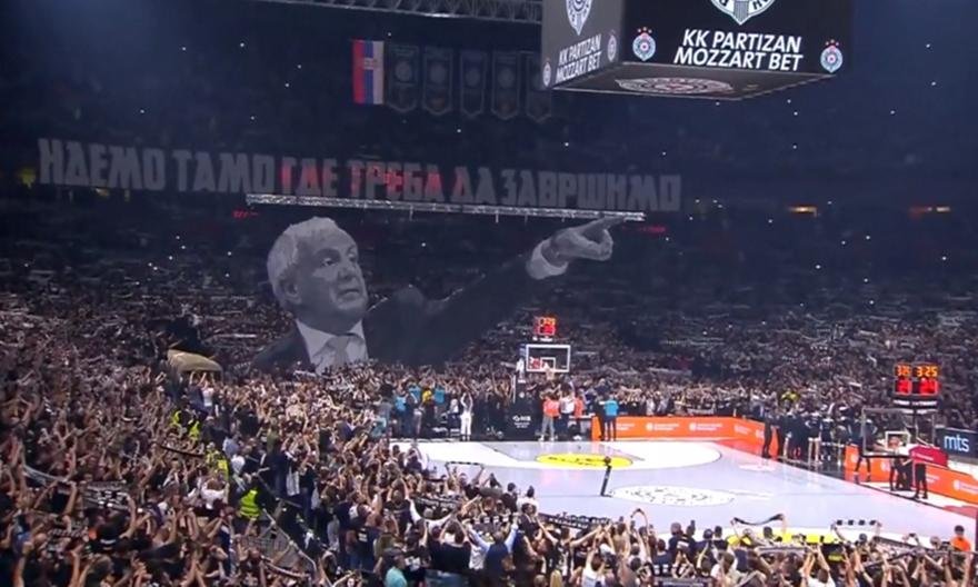 Οι φίλοι της Παρτιζάν έχουν δημιουργήσει μαγική ατμόσφαιρα στην «Stark Arena», αναρτώντας ένα απίθανο κορεό με τη μορφή του προπονητή της ομάδας, Ζέλιμιρ Ομπράντοβιτς!