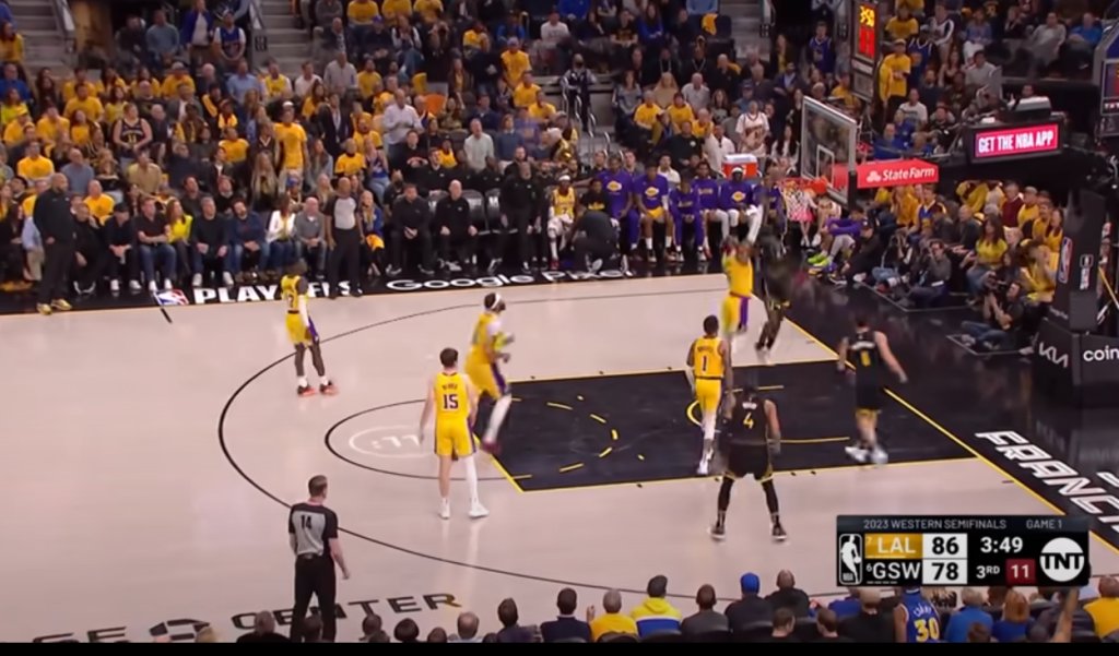Με πάσα πίσω από τη πλάτη, ο Τόμπσον βρήκε τον γκαρντ των Γουόριορς και εκείνος κάρφωσε, στην κορυφαία φάση των αγώνων playoffs που έγιναν τα ξημερώματα