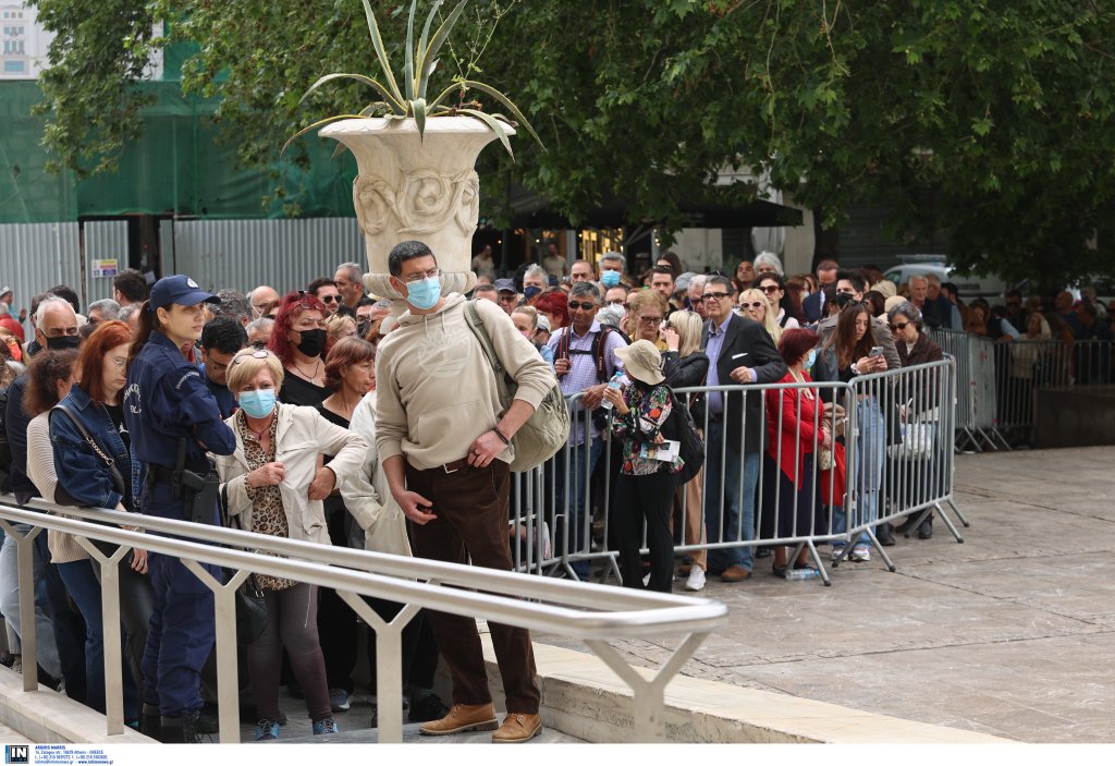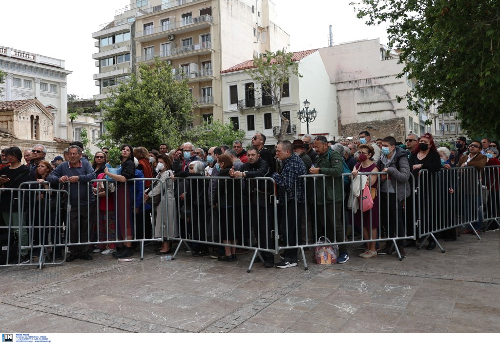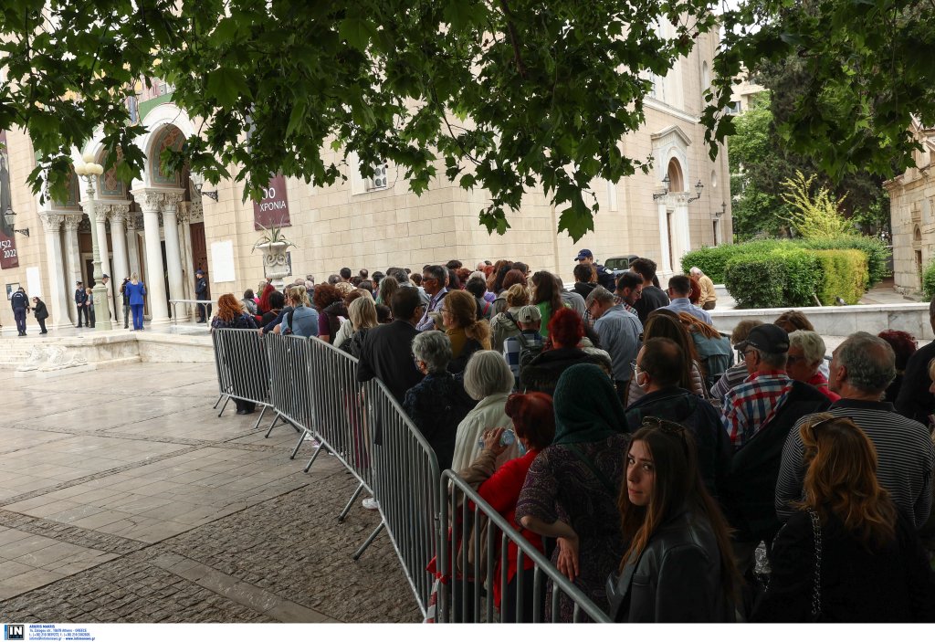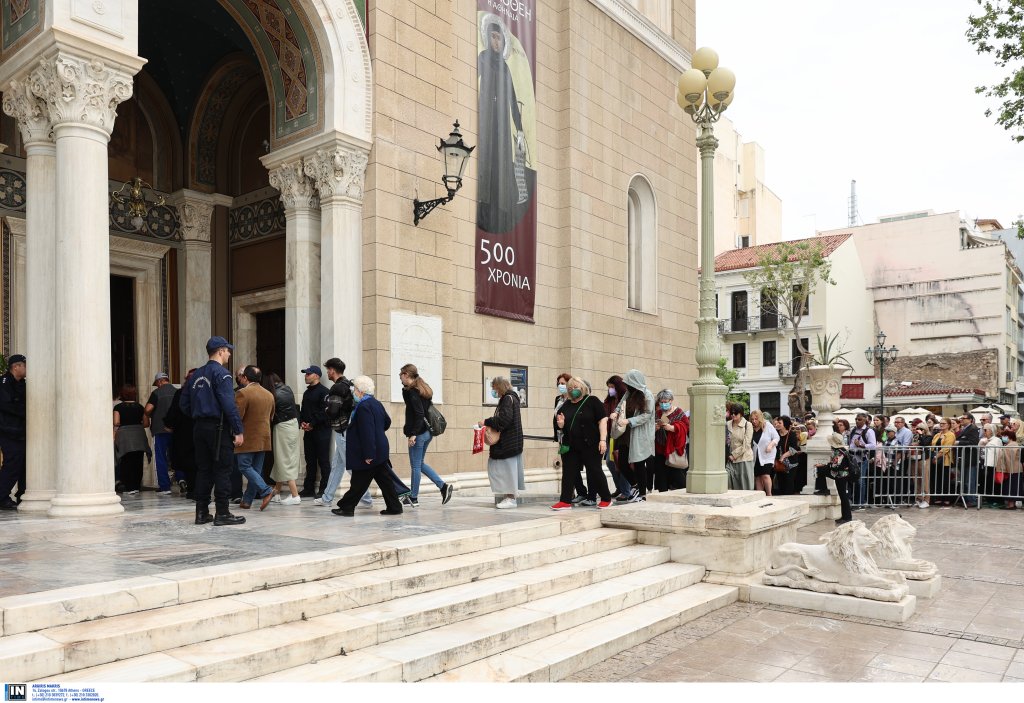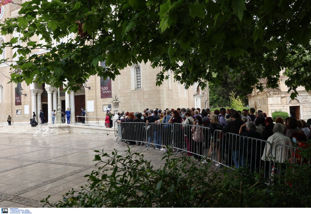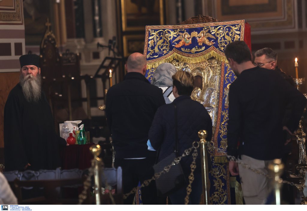 Μια τεράστια ουρά έχει σχηματιστεί στη Μητρόπολη Αθηνών για το προσκύνημα της εικόνας «Άξιον Εστί». Εκατοντάδες άτομα κάθε ηλικίας περιμένουν μέχρι να φτάσει η στιγμή που θα περάσουν μέσα στην εκκλησία και θα καταλήξουν μπροστά στην εικόνα της Παναγίας, «Άξιον Εστί».