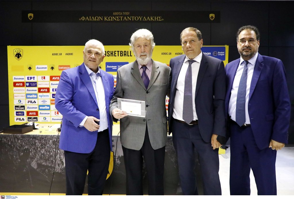 Συμπληρώθηκε κιόλας ένας χρόνος από τη στιγμή που η διοίκηση της ΚΑΕ ΑΕΚ προχώρησε στην εκδήλωση ονοματοδοσίας της Αίθουσας Τύπου, «Φαίδων Κωνσταντουδάκης» στο γήπεδο στα Άνω Λιόσια, προς τιμήν του «Πατριάρχη» του ρεπορτάζ του Δικεφάλου.