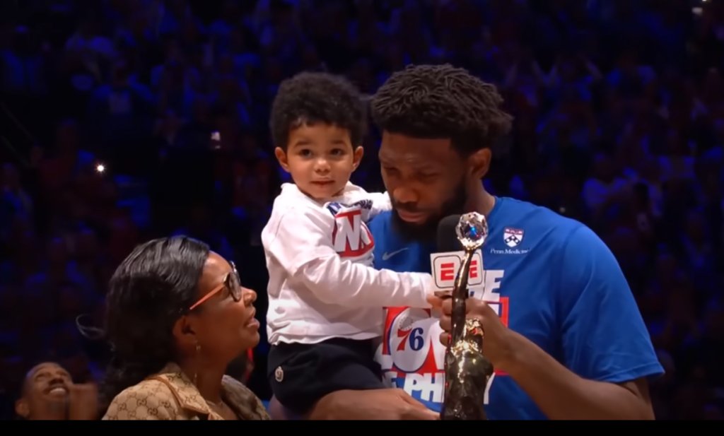 Έχοντας αγκαλιά τον γιο του, ο Καμερουνέζος σέντερ των Σίξερς δεν έκρυψε τη συγκίνησή του και έβαλε τα κλάματα.