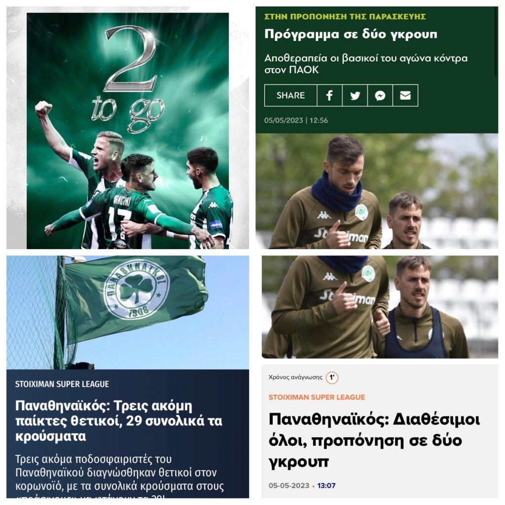 Είναι χαρακτηριστικό, όπως καταγράφεται και στα ρεπορτάζ της Παρασκευής πως δεν υπήρχε το παραμικρό σχετικά με το κύμα πανδημίας που χτύπησε το πράσινο στρατόπεδο και το πρωί του Σαββάτου ανακοινώθηκε σε πρώτη φάση ο μεγάλος όγκος των κρουσμάτων για να ακολουθήσει ενημέρωση για άλλα τρία συν τρία κρούσματα που πλέον φτάνουν ρα 29. Μια εξέλιξη που οδήγησε τον ΠΑΟ στο αίτημα για αναβολή που έγινε δεκτό και πλέον αναμένουμε το πότε θα οριστεί η προτελευταία αγωνιστική που περιλαμβάνει το πολύ κρίσιμο ντέρμπι αιωνίων στο Φάληρο και τη δύσκολη έξοδο της ΑΕΚ στο Χαριλάου.