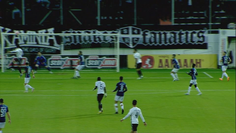 Ο Μπάκιτς πήδηξε ανενόχλητος στην «καρδιά» της περιοχής του Ιωνικού, έπιασε καρφωτή κεφαλιά, αλλά ο Χουτεσιώτης έδιωξε εντυπωσιακά στο 7ο λεπτό