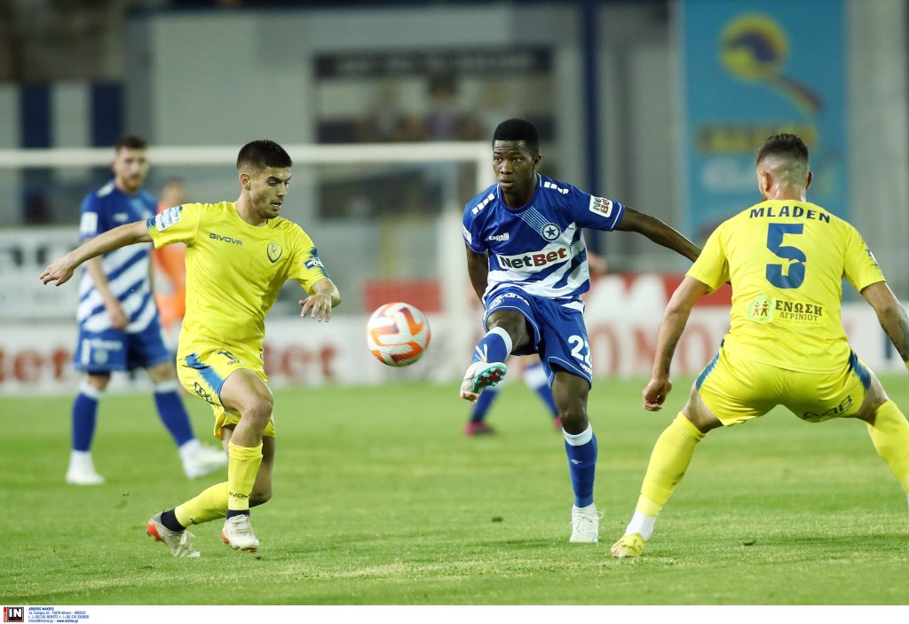 Στο 27’ ο Χουάνπι εκτέλεσε το φάουλ από τα δεξιά, ο Μαλής πήρε την κεφαλιά όμως ο πορτιέρε των γηπεδούχων μπλόκαρε σταθερά και στο 30’ οι Περιστεριώτες άνοιξαν το σκορ .Ο Κοτσόπουλος έστρωσε στον Κλωναρίδη, εκείνος σούταρε, ο Μαλής δεν έδιωξε καλά με αποτέλεσμα η μπάλα να καταλήξει στον Καμαρά που με πλασέ προ κενής εστίας έγραψε το 1-0. Η ομάδα του Αγρινίου σκόραρε στο 45+3’ με τον Μλάντεν όμως το γκολ ακυρώθηκε σωστά, καθώς ο Χουχούμης ήταν εκτεθειμένος στην αρχή της φάσης.