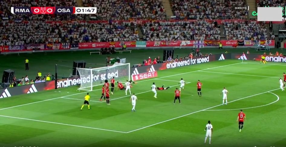 Στα 107 μόλις δευτερόλεπτα, ο Βινίσιους άδειασε όποιον βρήκε στα αριστερά, έκανε το γύρισμα και ο Ροδρίγο από το ύψος του πέναλτι έγραψε το 1-0
