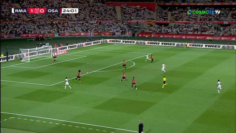 Στο 24’ μετά από νέο γύρισμα του Βινίσιους ο Ροδρίγο έστρωσε στον Μπενζεμά που πλάσαρε από το πέναλτι αλλά είδε τον Ερέρα να σώζει εντυπωσιακά
