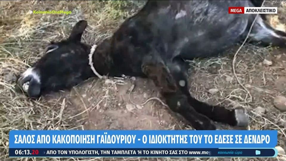 Σύμφωνα με την καταγγελία που έγινε στα μέσα κοινωνικής δικτύωσης από τη «Γαϊδουροχώρα-το Ελληνικό Κέντρο για το Γαϊδούρι», το ζώο πιάστηκε στο σχοινί που ήταν δεμένο, πάλευε να ξεπιαστεί επί μέρες μέρες και στο τέλος κατέληξε.