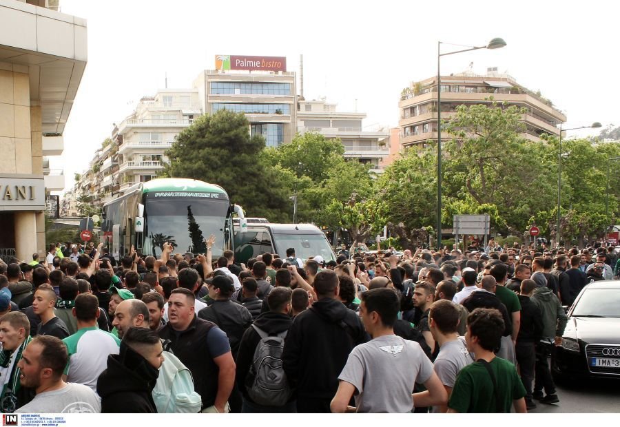 Πολύς κόσμος έχει συγκεντρωθεί στο ξενοδοχείο του Παναθηναϊκού προκειμένου να τονώσουν ψυχολογικά τους παίκτες του τριφυλλιού ενόψει του ντέρμπι με τον Ολυμπιακό. Ο κόσμος βρίσκεται όπως βλέπουμε μια ανάσα από το πούλμαν της αποστολής...