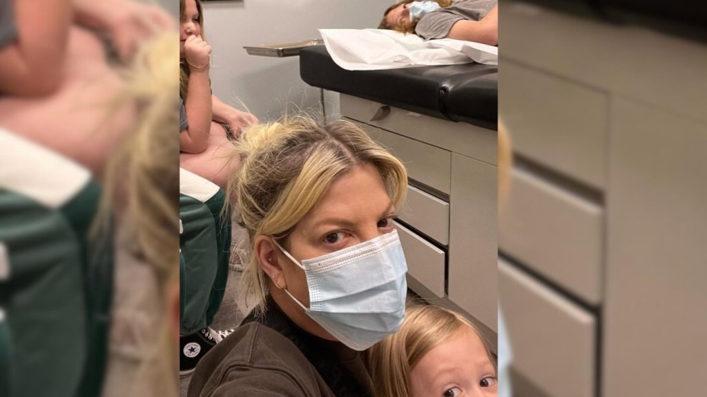 Η ηθοποιός ανέβασε στα social media φωτογραφίες με την ίδια να φορά μάσκα και τα παιδιά της να βρίσκονται μέσα στο ιατρείο επειγόντων περιστατικών.