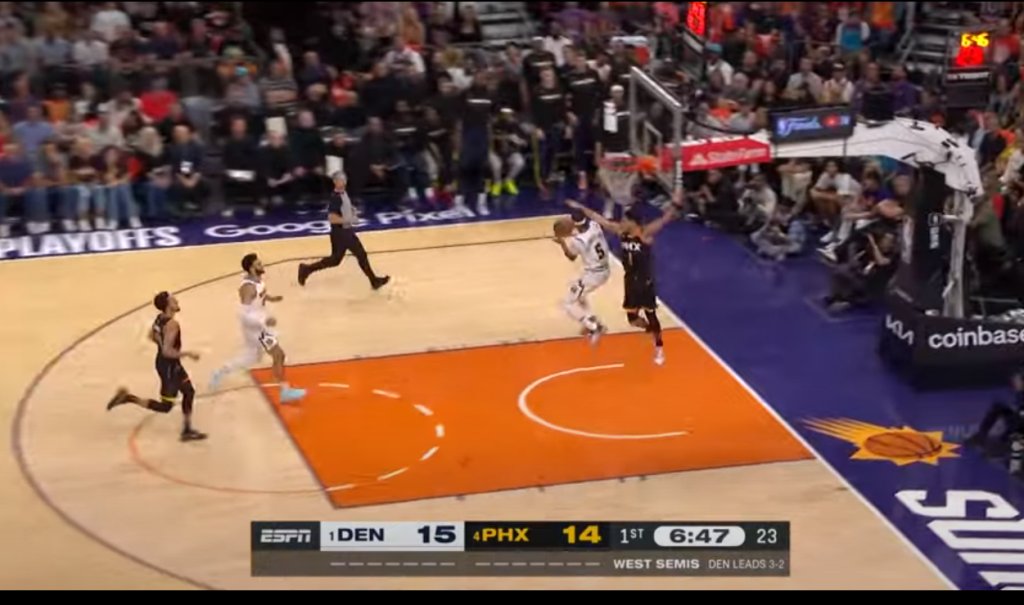 Στο Game 6, οι Νάγκετς χρειάστηκε να κάνουν ένα επιμέρους 23-2, στα τελευταία λεπτά της πρώτης περιόδου, προκειμένου να προηγηθούν 26-44 στο 12ο λεπτό και να ελέγξουν το παιχνίδι μέχρι το φινάλε. Στο ημίχρονο, η διαφορά ήταν στους 30 πόντους, 51-81, με τους Σανς να μην βγάζουν αντίδραση, στην επανάληψη, και να αποκλείονται, ξανά, στα ημιτελικά, όπως συνέβη και πέρυσι, απέναντι στους Ντάλας Μάβερικς.