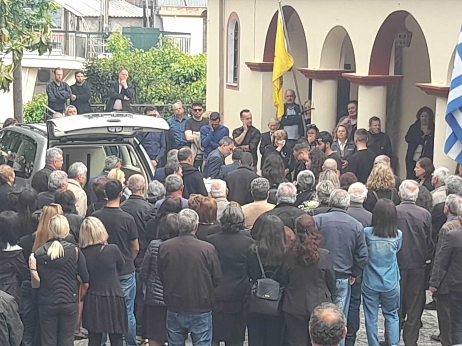 Οι γονείς του μωρού έφτασαν αγκαλιασμένοι στην εκκλησία, ενώ τραγικές σκηνές εκτυλίχθηκαν όταν έφτασε το φέρετρο. Μόλις ο πατέρας αντίκρισε το μικρό λευκό φέρετρο κατέρρευσε με τους συγγενείς του να σπεύδουν να τον ηρεμήσουν.