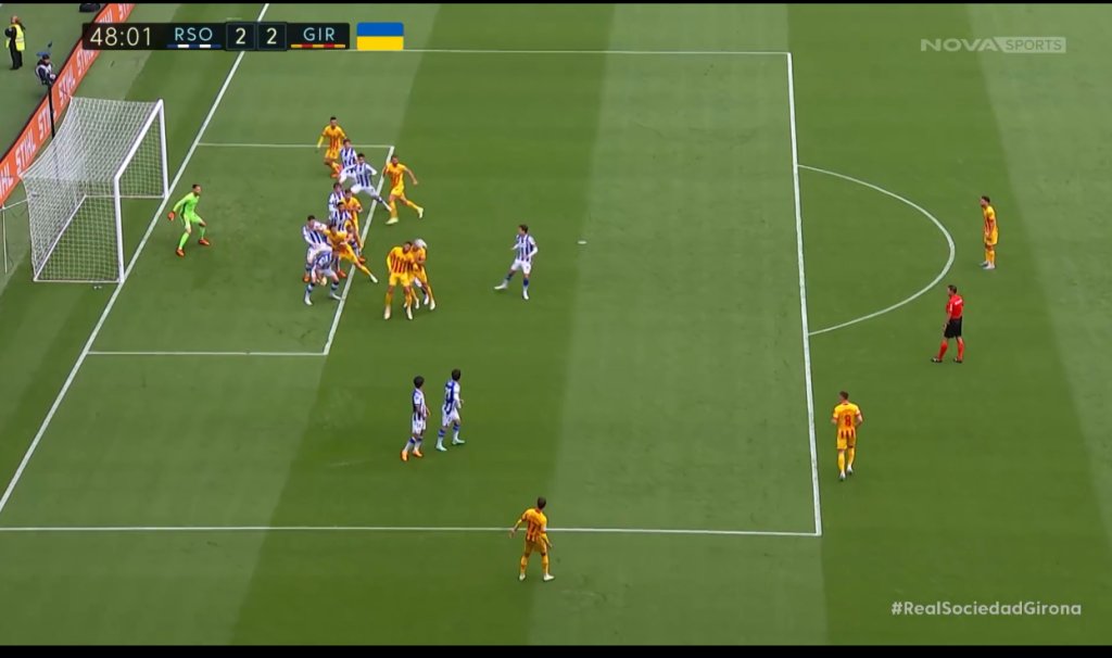 Στο δεύτερο ημίχρονο η Σοσιεδάδ έψαξε τρίτο γκολ, είχε δοκάρι με τον Κάρλος Φερνάντες που είχε περάσει αλλαγή στη θέση του Σόρλοθ. Η Τζιρόνα άντεξε, παρότι από το 87' αγωνιζόταν με δέκα παίκτες, λόγω αποβολής του Ρομέου, με δεύτερη κίτρινη, για μαρκάρισμα στον Σίλβα και παρά το γεγονός πως έπαιξε χωρίς τον πρώτο της σκόρερ, τον Καστεγιάνος. Με τον βαθμό αυτό, διατηρεί ελπίδες για την έβδομη θέση, η οποία οδηγεί στο Conference League, μετά την κατάκτηση του Κυπέλλου από τη Ρεάλ Μαδρίτης.
