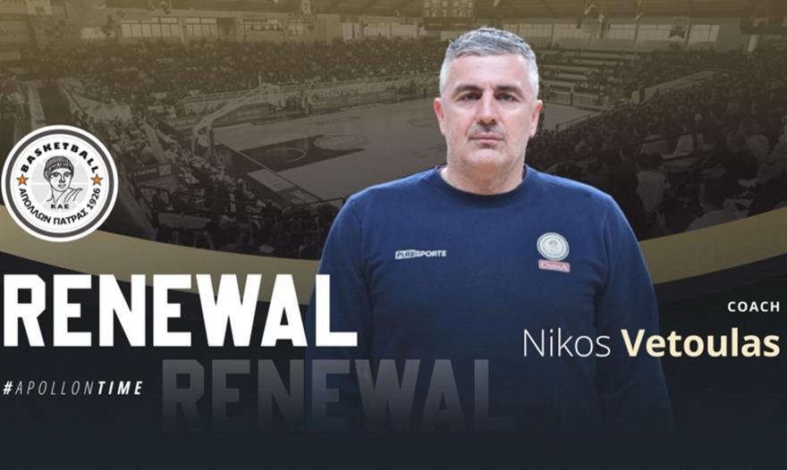 Αναλυτικά, η επίσημη ανακοίνωση: «Ο Νίκος Βετούλας είναι ένας από εμάς! Επίλεκτο μέλος της οικογένειας του Απόλλωνα και θα συνεχίσει και τη νέα περίοδο να μετέχει από την άκρη του πάγκου στην προσπάθεια που κάνουμε όλοι μαζί, με τα γνωστά σε όλους αποτελέσματα. Η ομάδα μας βήμα-βήμα συνεχώς προοδεύει σε όλα τα επίπεδα και χαρίζει μοναδικές στιγμές στην Πάτρα, που τη χαίρεται, την αγαπά και τη στηρίζει με πάθος!