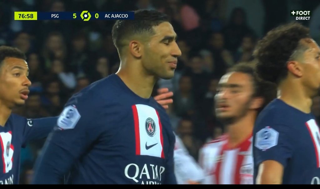 Στις εικόνες που καταγράφηκαν στους διαδρόμους και μεταδόθηκαν μετά τον αγώνα από το Canal+ Foot, ο Χακίμι εμφανίζεται πολύ εκνευρισμένος όταν μπαίνει στα αποδυτήρια. Μάλιστα, κοιτάζοντας την κάμερα, είπε "Αυτή είναι η Γαλλία".