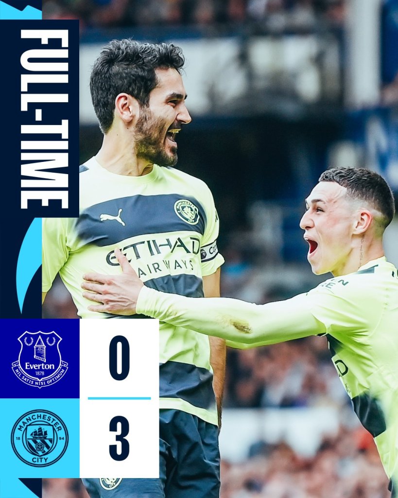 Ο Γκιντογκάν βρέθηκε σε... δαιμονιώδες μεσημέρι και θα διπλασίαζε τα προσωπικά του τέρματα με υπέροχη εκτέλεση φάουλ στο 50ο λεπτό για να γράψει και 3-0 για την Σίτι στο Λίβερπουλ. Με αβαντάζ τριών τερμάτων, η Σίτι πλέον μπορούσε να ηρεμήσει και να περιμένει να τελειώσει το ματς. Στο 66' η Έβερτον σε μια σπάνια απειλή προς την εστία του Έντερσον με κεφαλιές των Ταρκόφσκι και Μίνα από εκτελέσεις κόρνερ επιχείρησε να γίνει επικίνδυνη, αλλά δεν μπορούσε ν' αλλάξει τίποτα στο παιχνίδι. Το κλαμπ του Μάντσεστερ πορεύεται ολοταχώς για την κατάκτηση του τίτλου έχοντας μπροστά του και τον επαναληπτικό ημιτελικό του Τσάμπιονς Λιγκ με την Ρεάλ Μαδρίτης, ενώ, η Έβερτον θα συνεχίσει να ψάχνει βαθμούς επιβίωσης μέχρι την τελευταία στιγμή της σεζόν...
