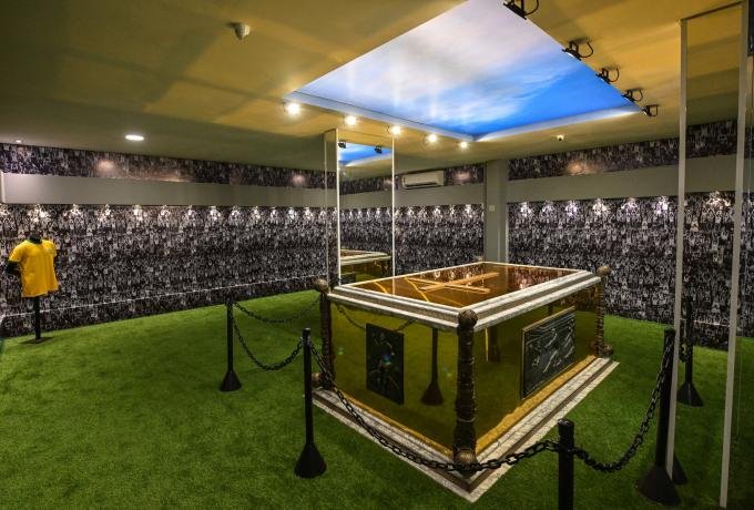 Το ειδικά σχεδιασμένο για αυτόν μαυσωλείο, καλύπτει έναν χώρο 200 τ.μ. και θυμίζει γήπεδο ποδοσφαίρου, με τον συνθετικό χλοοτάπητα και τις φωτογραφίες του «Βασιλιά». Η πρόσβαση, γίνεται μέσω ενός διαδρόμου πλάτους δύο μέτρων διακοσμημένου με φωτογραφίες του πιό διάσημου «Νο 10» στην ποδοσφαιρική Ιστορία και βρίσκεται στον 1ο από τους 14 ορόφους του επιβλητικού κτηρίου.