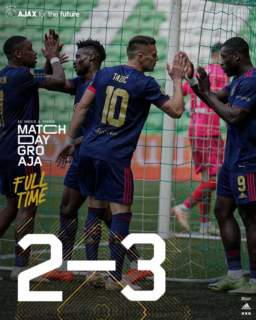 Ο Άγιαξ στο ματς που είχε διακοπεί λόγω επεισοδίων την Κυριακή, επικράτησε με 3-2 της υποβιβασμένης Χρόνινχεν και πάτησε ξανά στην τρίτη θέση της βαθμολογίας.