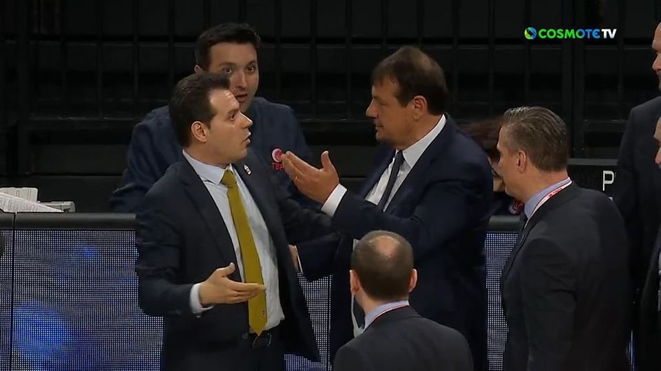Μια απορία του Εργκίν Αταμάν προς τον κόουτς της Φενέρ, τον Δημήτρη Ιτούδη, προκάλεσε έναν έντονο διάλογο μπροστά από το τραπέζι της γραμματείας. Για κάμποσα δευτερόλεπτα οι δυο τους συνομιλούσαν, κάνοντας διάφορες χειρονομίες, προτού η παρεξήγηση λυθεί και, αφού αγκαλιάστηκαν, κατευθύνθηκαν στη φυσούνα.