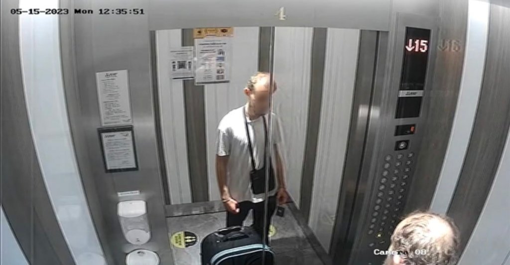Μάλιστα, πλάνα από το κλειστό κύκλωμα παρακολούθησης δείχνουν τον άντρα να βγαίνει από τον ανελκυστήρα, τρέμοντας και κρατώντας τη βαλίτσα του.