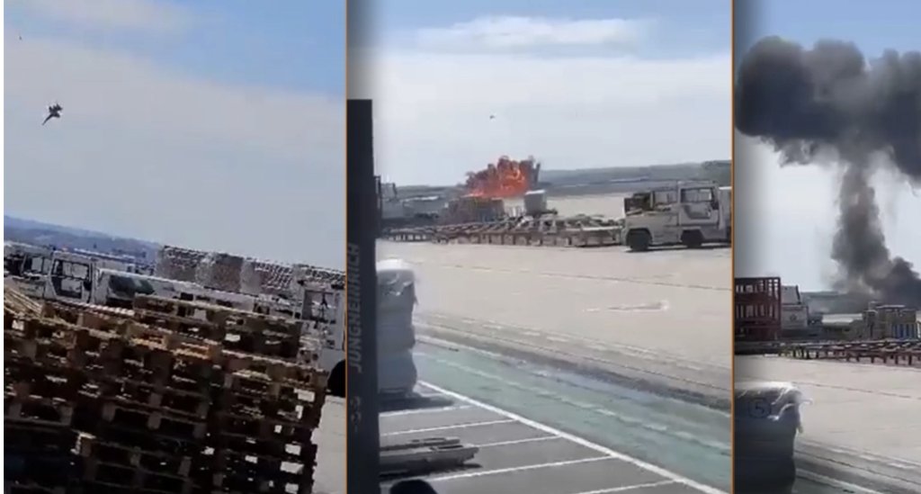 Οπως φαίνεται στα πλάνα, αμέσως μετά τη συντριβή στο έδαφος, το δικινητήριο F-18 της ισπανικής πολεμικής αεροπορίας τυλίγεται στις φλόγες.