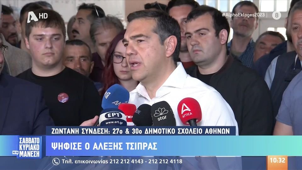 Ο πρόεδρος του ΣΥΡΙΖΑ καλημέρισε δημοσιογράφους και πολίτες που ήταν στο σχολείο της Κυψέλης,