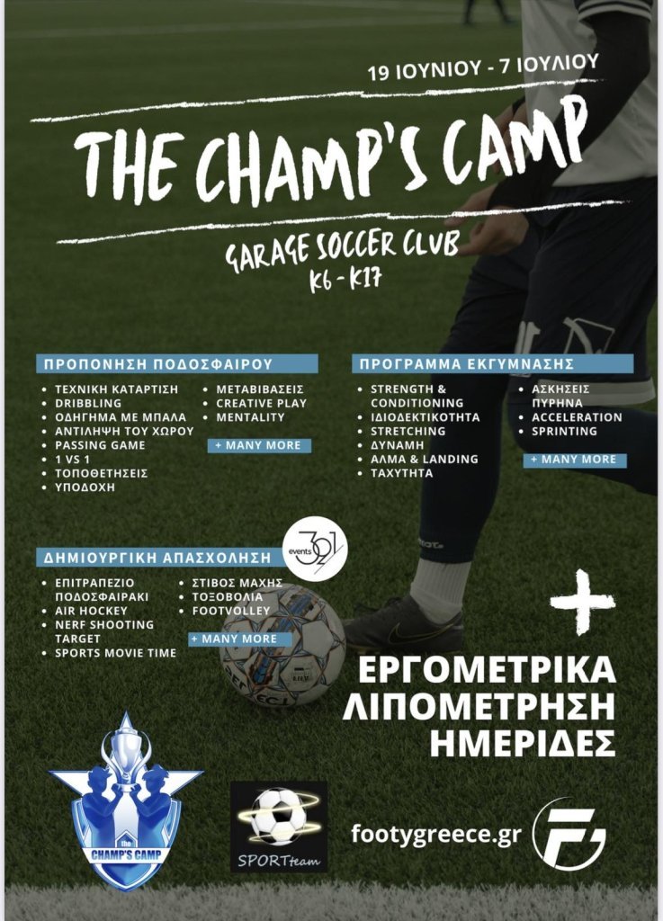 Το θερινό αυτό πρόγραμμα («The Champ’s Camp») έχει σκοπό και στόχο να προσφέρει αξέχαστες εμπειρίες μέσα από ένα πλούσιο και ισορροπημένο αθλητικό και ψυχαγωγικό πρόγραμμα, σχεδιασμένο για παιδιά και εφήβους που επιθυμούν να περάσουν δημιουργικά τις ημέρες του καλοκαιριού και να εξελιχθούν αθλητικά και ποδοσφαιρικά μετά τη λήξη του σχολικού έτους