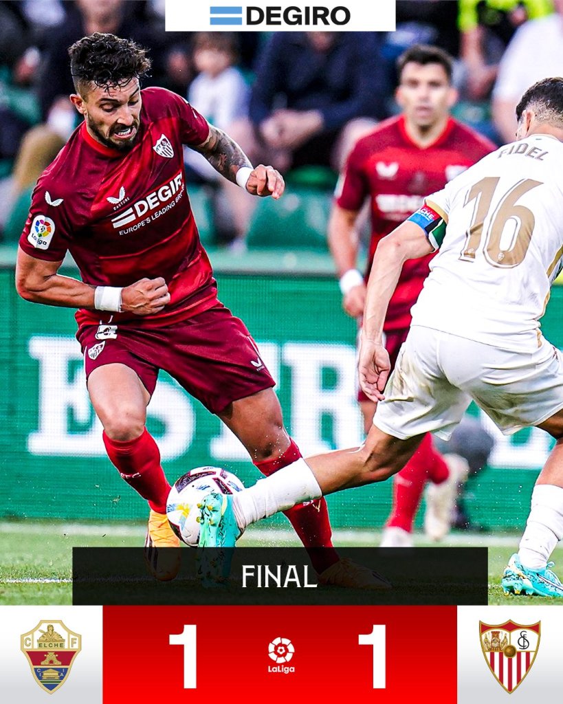 Η Σεβίλλη αν και έπαιζε με παίχτη λιγότερο από το 18’ κατάφερε να φύγει με τον βαθμό από το «Μανουέλ Μαρτίνεθ Βαλέρο», καθώς αναδείχθηκε ισόπαλη 1-1 με την Έλτσε για την 36η αγωνιστική της La Liga.