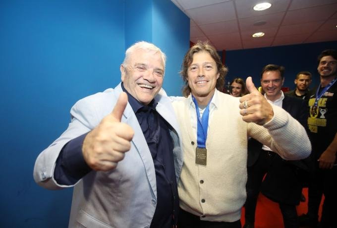 Πανευτυχής ο Ματίας Αλμέιδα, που είδε τα παιδιά του να κατακτάνε, μετά το πρωτάθλημα, και το Κύπελλο Ελλάδας.