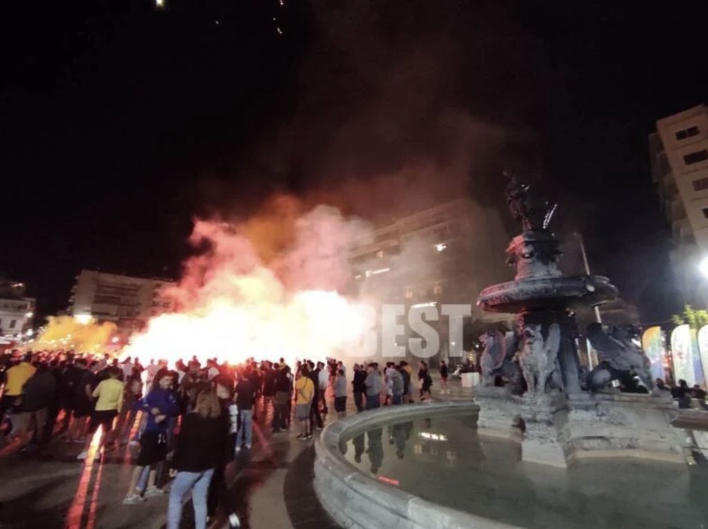 Πανικός και στην Πάτρα για την ΑΕΚΑΡΑ! Οι φίλαθλοι της Ένωσης είδαν τον αγώνα στα καφέ της πλατείας Όλγας και όπως ήταν φυσικό με τη λήξη του ματς οι πανηγυρισμοί ήταν έντονοι. Μάλιστα ανάβοντας καπνογόνα πραγματοποίησαν πορεία στο κέντρο της πόλης καταλήγοντας στην πλατεία Γεωργίου μετατρέποντας την πόλη σε Νέα Φιλαδέλφεια!