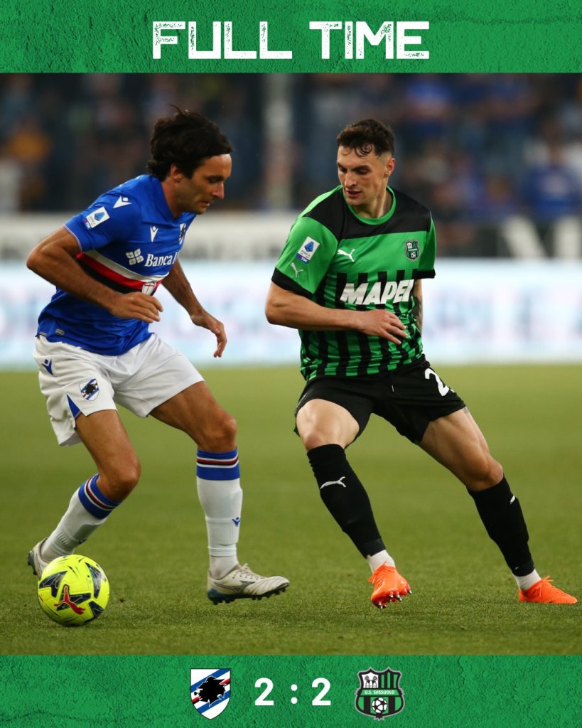 Στο 2-2 έμειναν Σαμπντόρια και Σασουόλο για την 37η αγωνιστική του ιταλικού πρωταθλήματος.