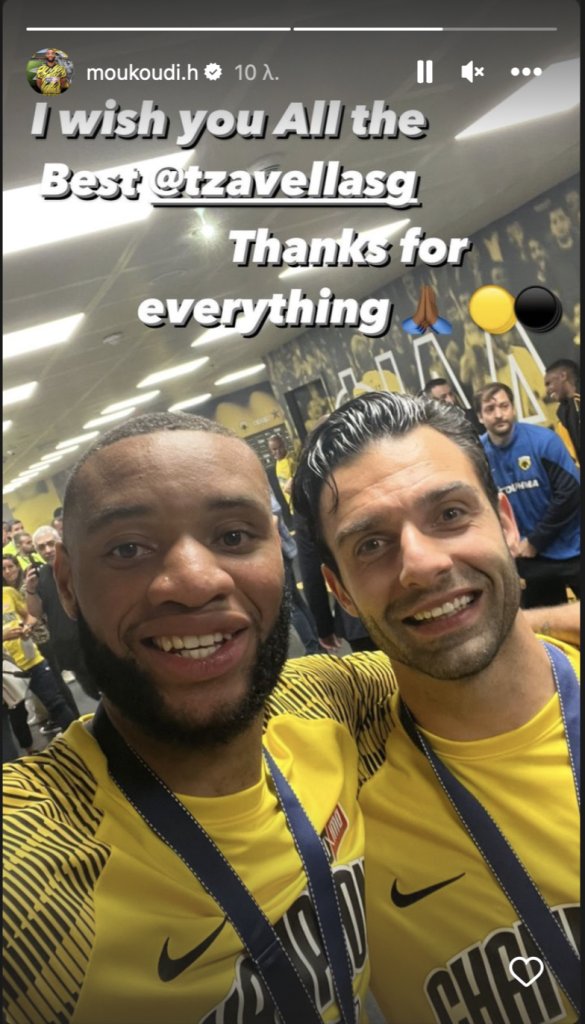 Νωρίτερα ο Γιώργος Τζαβέλλας με αινιγματική του ανάρτηση ευχαρίστησε την ΑΕΚ για τα δύο χρόνια συνεργασίας, τώρα, ο Αρολντ Μουκουντί είναι αυτός, που με insta story φαίνεται να αποχαιρετά τον διεθνή αμυντικό. Σου εύχομαι τα καλύτερα, σε ευχαριστώ για όλα, έγραψε ο Καμερουνέζος αμυντικός ανεβάζοντας και μια φωτογραφία με τον Τζάβε, δείχνοντας την εκτιμηση του προς αυτόν αλλά και το πόσο τον βοήθησε φέτος...