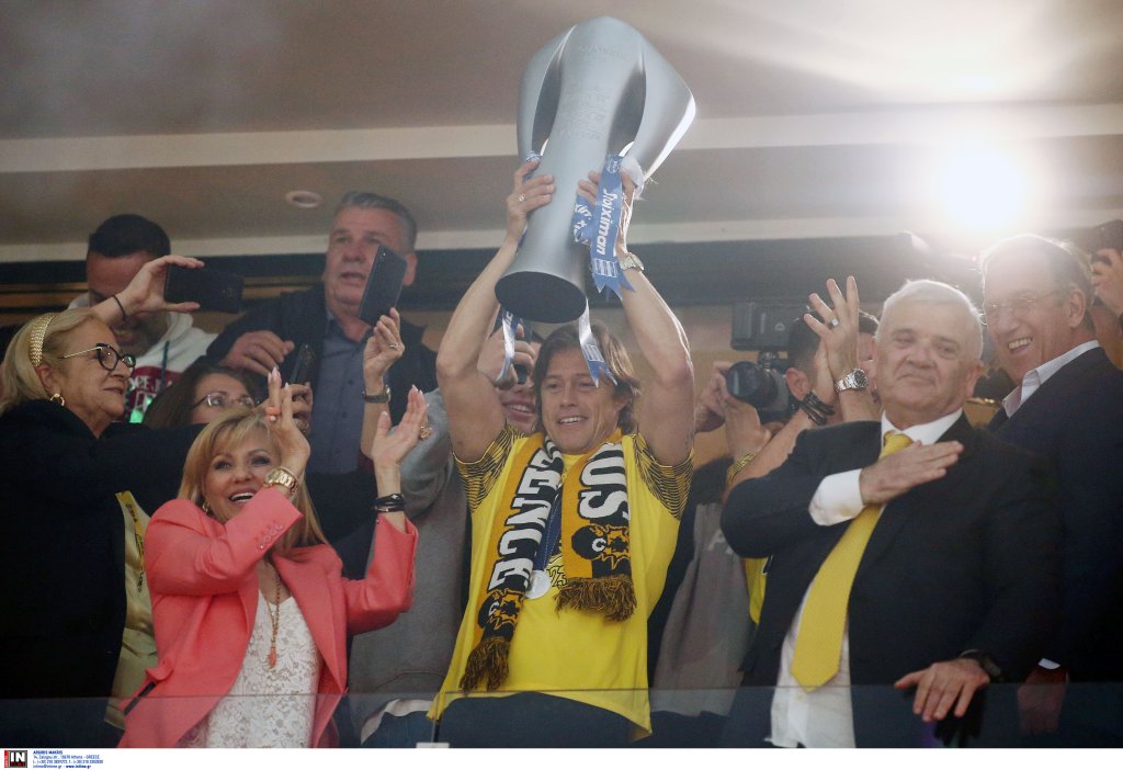 «Θέλουμε να βλέπουμε την ΑΕΚ να παίζει ωραίο ποδόσφαιρο να έχει διακρίσεις και στην Ελλάδα και στο εξωτερικό. Ό,τι χρειάζεται θα το κάνουμε, ό,τι μας ζητήσει ο προπονητής θα το κάνουμε. Είμαστε και τυχεροί που πέσαμε σε φλέβα χρυσού με τον Αλμέιδα, ας μην κρυβόμαστε. Αυτός είναι ο μεγάλος πρωταγωνιστής της προσπάθειας που κάναμε, Η διοίκηση είναι δίπλα του και φέτος του έχει ήδη πει πως ό,τι ζητήσεις είναι νόμος και θα γίνει. Να ενισχύσουμε την ομάδα, θα κάνουμε 4-5 μεταγραφές και πιστεύω ότι αυτή η ομάδα μπορεί να πετύχει και διακρίσεις στην Ευρώπη. Στόχος είναι η διάθεση, περπατώντας και βλέποντας. Και βέβαια στόχος είναι και η έξοδος στο Champions League» τόνισε.