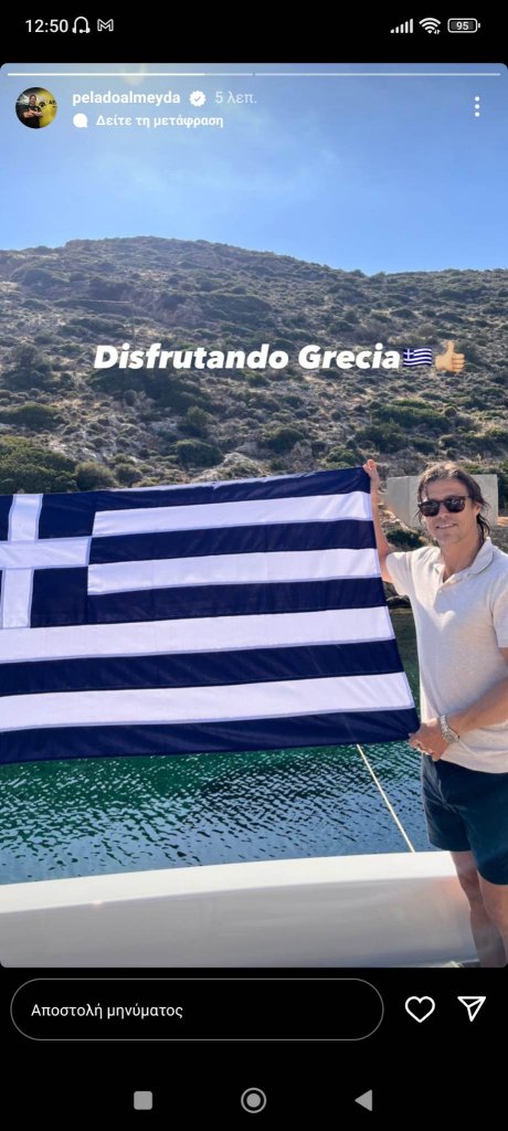 Λίγες ημέρες διακοπών στα ελληνικά νησιά απολαμβάνει ο Ματίας Αλμέιδα. Ο προπονητής μάλιστα πόσταρε φωτογραφίες στο Instagram με τοπίο και τον ίδιο να κρατά με χαρά την ελληνική σημαία γράφοντας: «Απολαμβάνοντας την Ελλάδα».