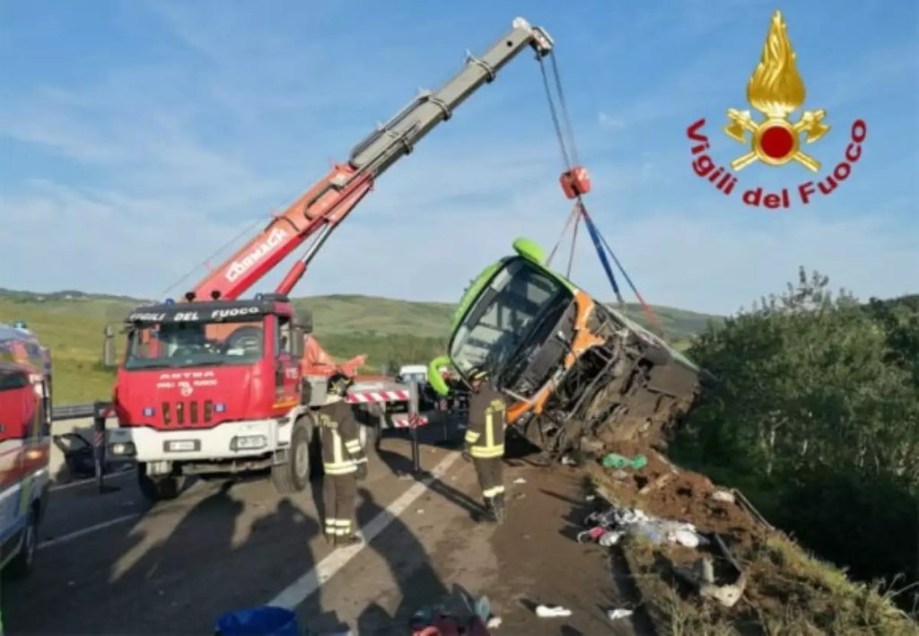 Ένας άνθρωπος έχασε τη ζωή του και 14 τραυματίστηκαν, όταν λεωφορείο έπεσε σε γκρεμό ύστερα από τροχαίο με τρία αυτοκίνητα που σημειώθηκε σήμερα (04.06.2023) τα ξημερώματα στον αυτοκινητόδρομο Α16 Νάπολι – Κανόσα, κοντά στην επαρχία Αβελίνο, στην Ιταλία.