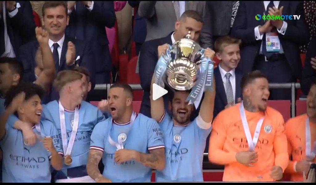 Μετά την κατάκτηση του Κυπέλλου Αγγλίας, η αποστολή της Μάντσεστερ Σίτι πήγε στο αεροδρόμιο του Λονδίνου, προκειμένου να επιστρέψει στη βάση της.