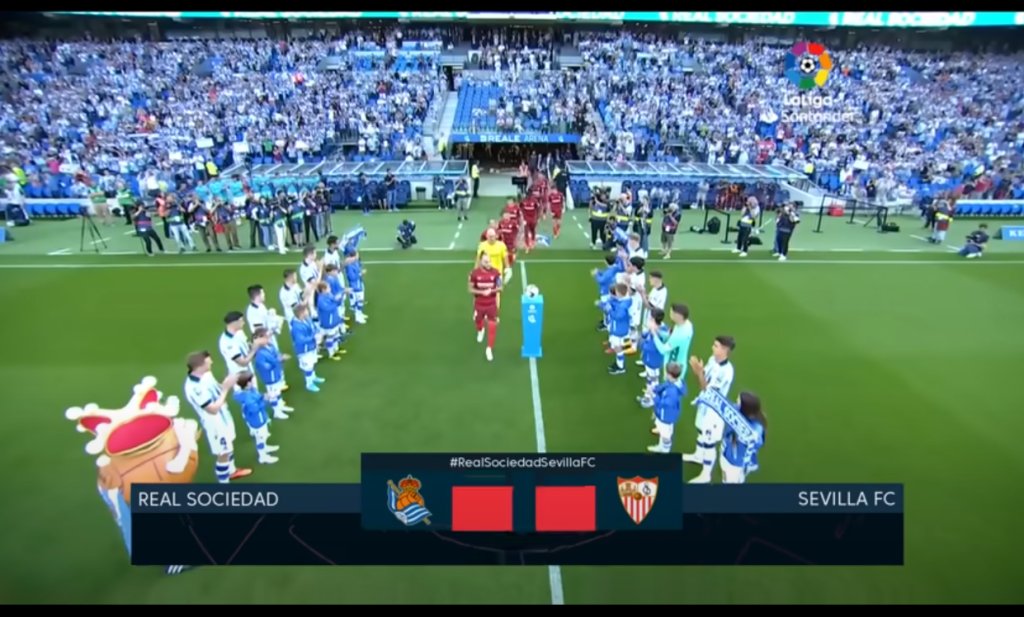 Πριν ξεκινήσει το ματς, οι ποδοσφαιριστές της Σοσιεδάδ σχημάτισαν έναν διάδρομο ώστε να χειροκροτήσουν τους ποδοσφαιριστές της Σεβίλλης για την κατάκτηση του έβδομου Europa League στην ιστορία της ομάδας.