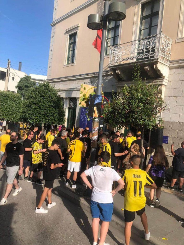 Πλήθος κόσμου έσπευσε στο Αρχοντικό Παναγιωτόπουλου στο Αίγιο προκειμένου να φωτογραφηθεί με την «κούπα» του πρωταθλήματος που κατάκτησε η ΑΕΚ!