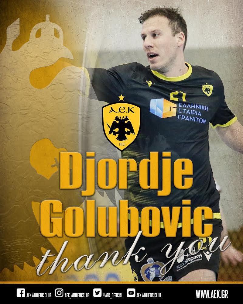Παρελθόν από την ομάδα χάντμπολ της ΑΕΚ αποτελεί ο Τζόρτζε Γκολούμποβιτς. Ο 30χρονος διεθνής Σέρβος που αποκτήθηκε από την Ένωση τον Φεβρουάριο και πλέον δεν θα αγωνίζεται με τα «κιτρινόμαυρα» χρώματα, καθώς η Ερασιτεχνική ΑΕΚ με ποστάρισμά της έκανε γνωστό το διαζύγιο, ενώ στη συνέχεια ευχαρίστησε τον παίκτη για την συνεργασία.