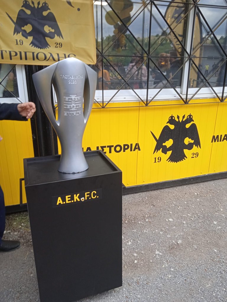 Στην Τρίπολη είναι σήμερα το κύπελλο της πρωταθλήτριας ΑΕΚ όπου θα παρουσιαστεί σε εκδήλωση της ΑΕΚ Τρίπολης στον μουσειακό χώρο του συλλόγου στο γήπεδο "Αναστάσιος Μουκάκης" στην προσφυγική συνοικία των Φιλικών (17.00-21.00).