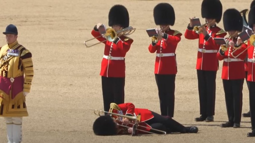 Βλέποντας τους συναδέλφους τους να λιποθυμούν, κανείς από τους διπλανούς στρατιώτες δεν έσπευσε να τους βοηθήσει για να μη χαλάσει ο σχηματισμός και «σπάσει» το πρωτόκολλο, όπως σχολιάζει ο βρετανικός Τύπος.