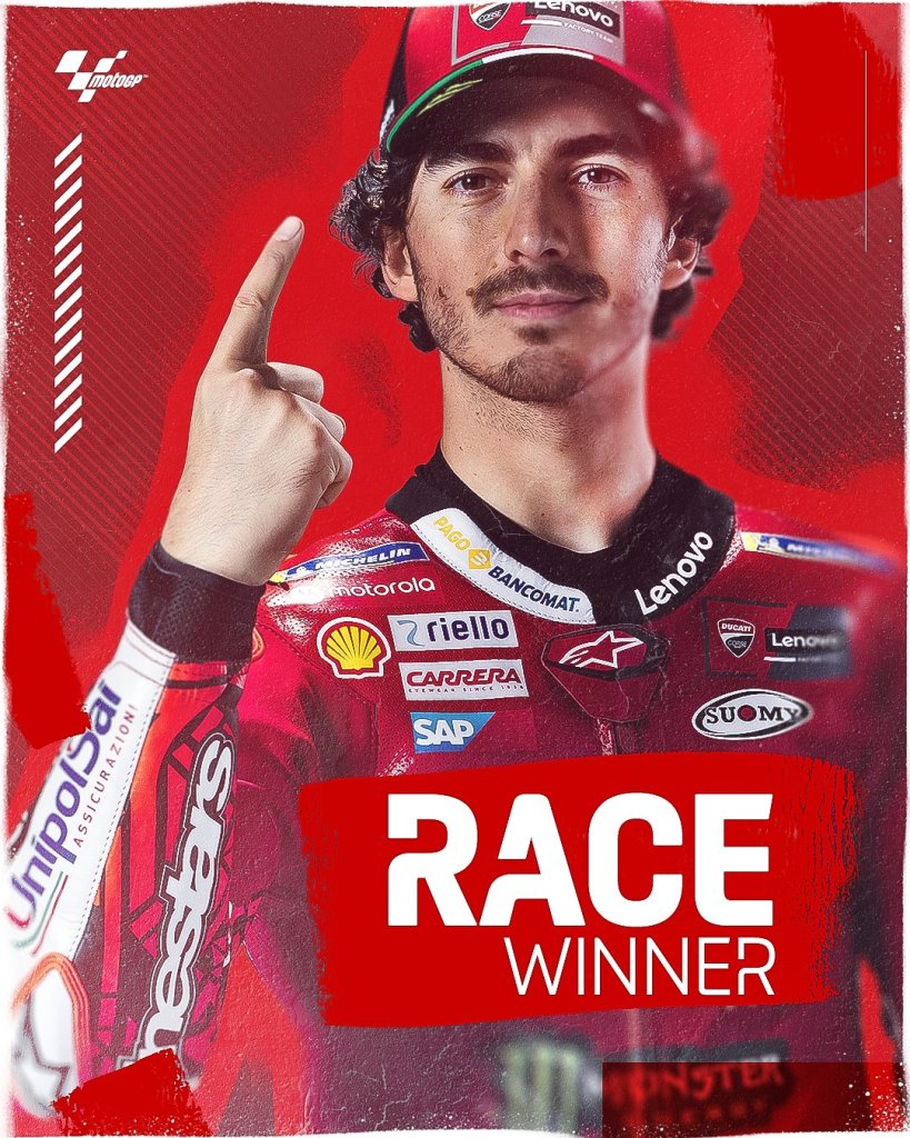 Τελικά δεν είχαμε ανατροπές, με τον Πέκο Μπανάια να πανηγυρίζει μια -εύκολη, όπως εξελίχθηκε- νίκη, μπροστά από τους Χόρχε Μαρτίν και Ζοάν Ζαρκό. Ο Λούκα Μαρίνι έκανε τέσσερις τις Ducati στις πρώτες τέσσερις θέσεις και ακολούθησαν οι Μπίντερ, Εσπαργκαρό, Μίλερ, Μπετζέκι, Μπαστιανίνι και Μπρμπιντέλι.