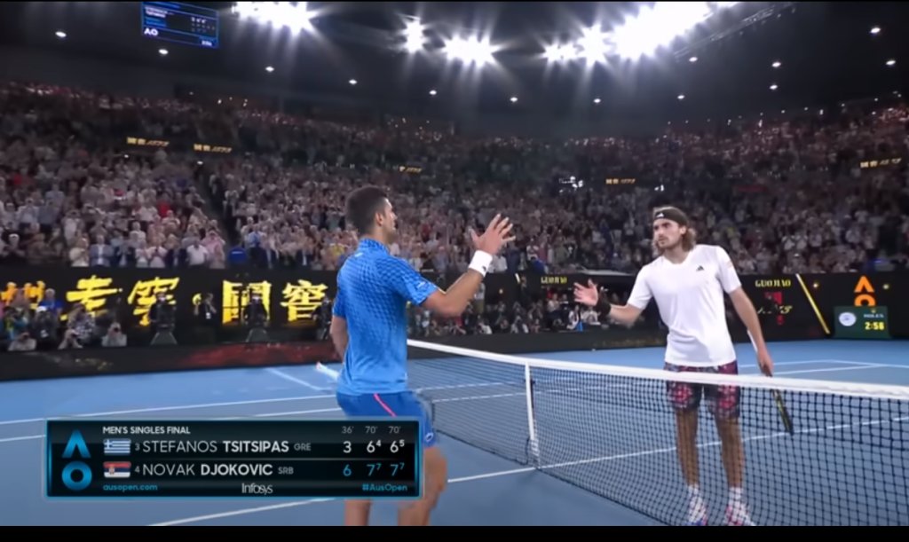 Στην ανάρτησή του, ο Τσιτσιπάς σημείωσε τα εξής: "Νόβακ, έχεις αγγίξει τις καρδιές μας με αλύγιστο πνεύμα και την ισχυρή αποφασιστικότητά σου. Η ικανότητά σου να αντιδράς μπροστά σε κάθε πρόκληση έχει γίνει σύμβολο ελπίδας για τους φιλάθλους σε όλο τον κόσμο. Σε ευχαριστώ που μας δείχνεις ότι με σκληρή δουλειά και πάθος, τα όνειρα μπορούν να γίνουν πραγματικότητα".