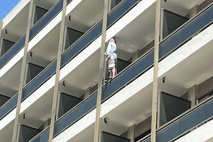 Μια γυναίκα έχει ανέβει στο μπαλκόνι του 4ου ορόφου ξενοδοχείου στη Λάρισα και απειλεί να πέσει στο κενό