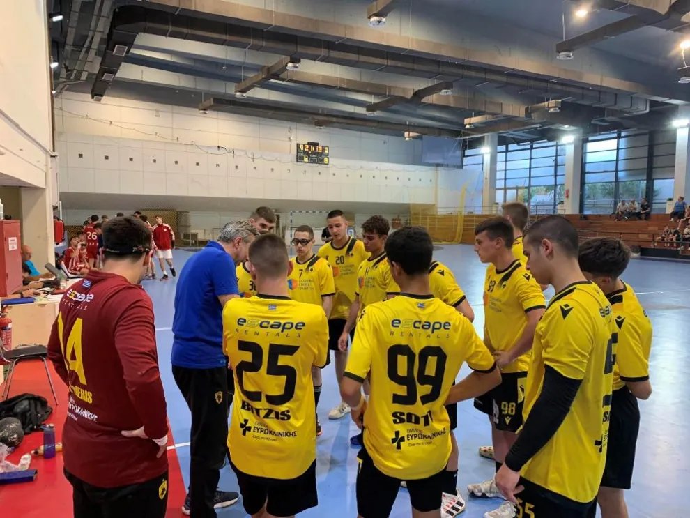 Οι μικροί αθλητές της ΑΕΚ είχαν ένα καλό ξεκίνημα στο πρώτο πεντάλεπτο αποκτώντας προβάδισμα στο σκορ με 3-0, ενώ κατάφερε να κρατήσει την διαφορά στο σκορ μέχρι το 10ο λεπτό. Η φιλοξενούμενη ομάδα πίεσε και κατάφερε να πάρει προβάδισμα στο 20′ με 7-8, όμως η «Ένωση» κατάφερε να περάσει ξανά μπροστά στο σκορ με 11-10, πηγαίνοντας στα αποδυτήρια με το προβάδισμα του ενός τέρματος.