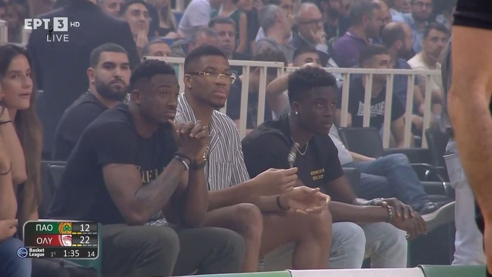 Γιάννης, Θανάσης και Άλεξ παρακολουθούν από κοντά τον τέταρτο τελικό, με τον αστέρα των Μπακς να έχει ένα... κομπολόι στα χέρια.