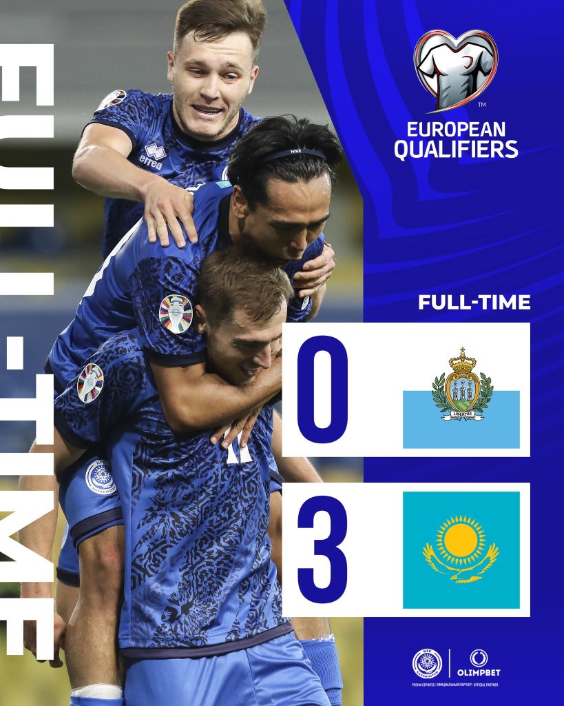 Το καθήκον του έκανε το Καζακστάν καθώς πέρασε με 3-0 από την έδρα του Σαν Μαρίνο και βρίσκεται στην 1η θέση μαζί με Δανία, Σλοβενία και Φινλανδία.