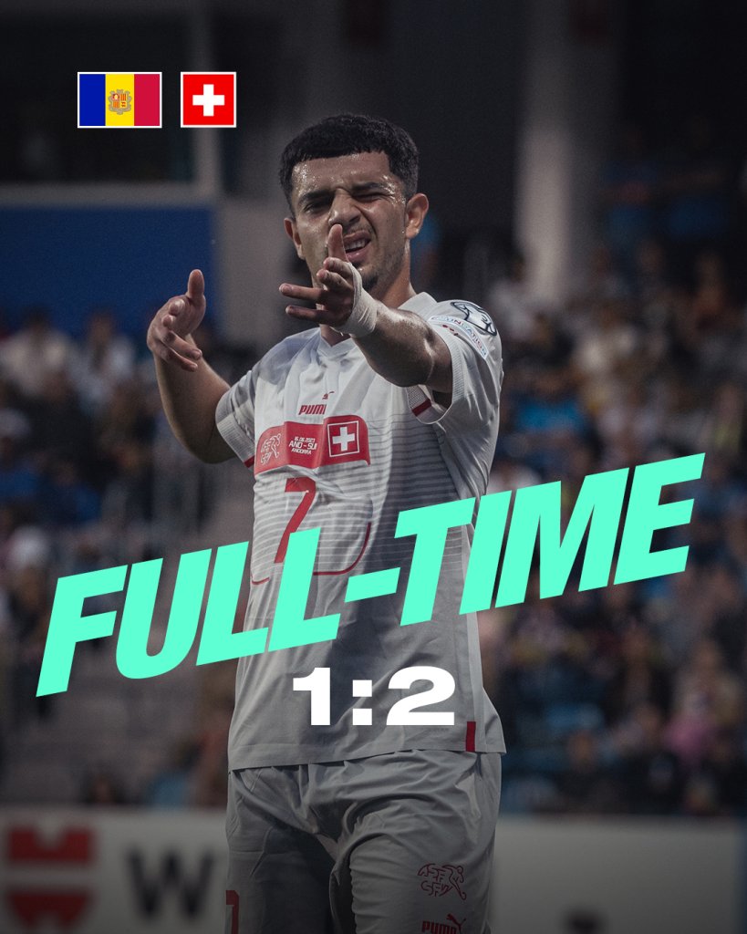 Το 3Χ3 έκανε η Ελβετία που πέρασε με 2-1 από την έδρα της Ανδόρας κι έμεινε μόνη πρώτη. Επιστροφή Τσούμπερ που μπήκε αλλαγή στο 61ο λεπτό.