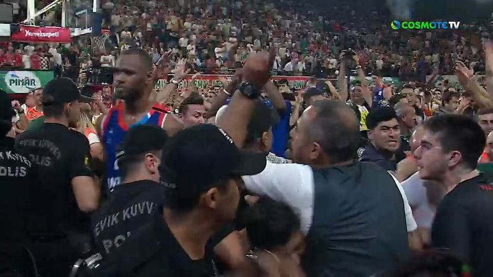 Αντικείμενα έπεσαν προς τον πάγκο της Εφές, ο Κενάν Σιπάχι και άλλοι παίκτες της Καρσίγιακα πήγαν στον Εμπαγέ για να του ζητήσουν εξηγήσεις, την ώρα που οι πιο ψύχραιμοι προσπαθούσαν να ηρεμήσουν την κατάσταση.