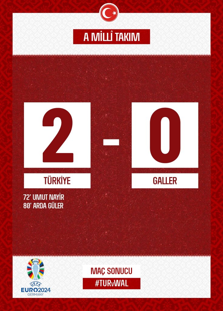 H Τουρκία πανηγύρισε τη νίκη με 2-0 κόντρα στην Ουαλία, έφτασε τους εννέα βαθμούς μετά από τέσσερις αγωνιστικές και παρέμεινε στην κορυφή του ομίλου. Με 10 ποδοσφαιριστές τελείωσαν την αναμέτρηση οι φιλοξενούμενοι.