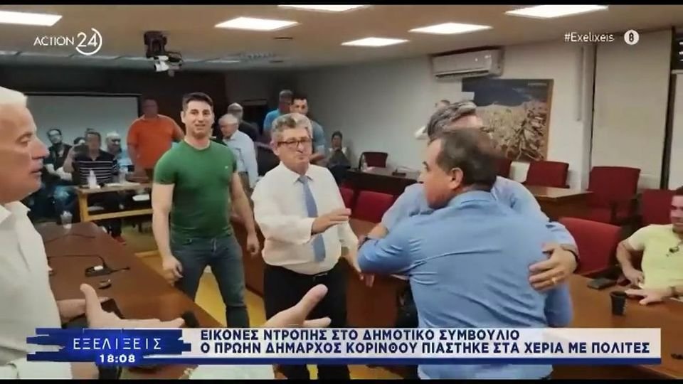 Ο πρώην δήμαρχος Κορίνθου πιάστηκε στα χέρια με πολίτες σε δημοτικό συμβούλιο (VIDEO)